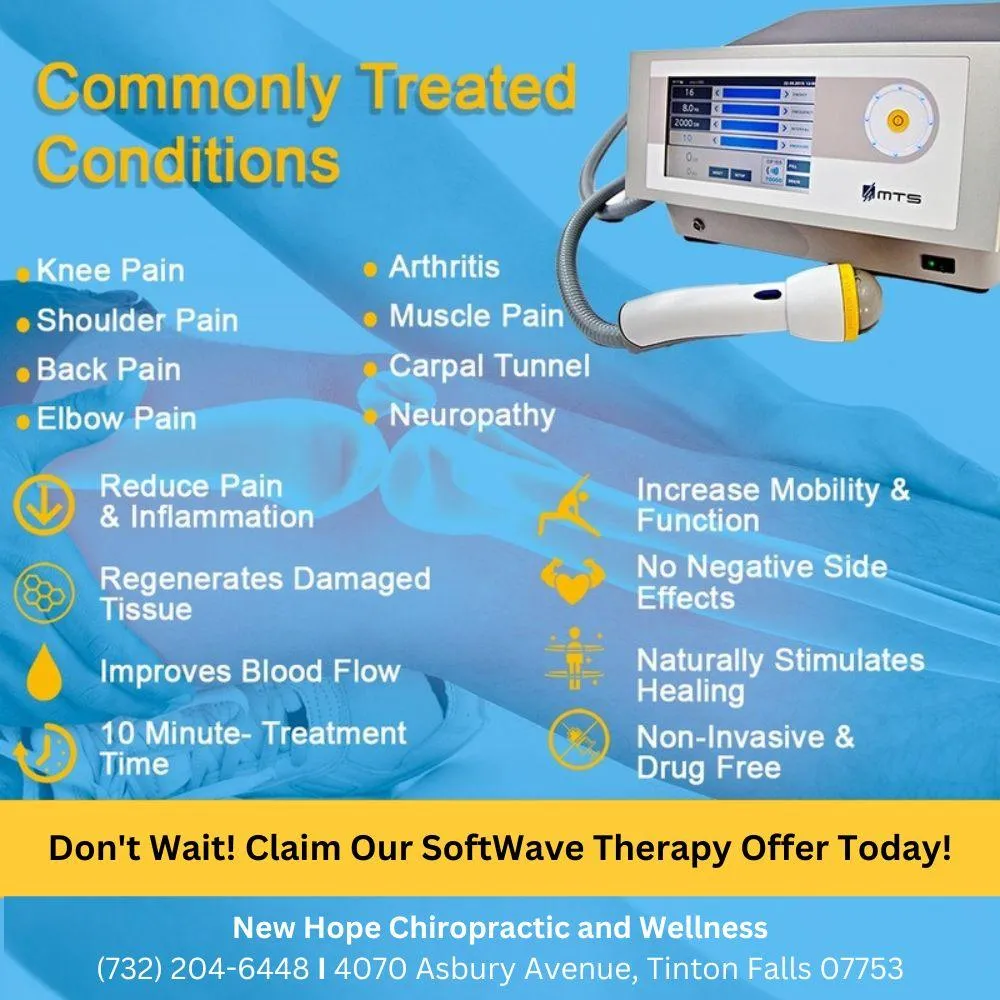 As part of this SoftWave™ Therapy special, you will receive the following at your appointment at New Hope Chiropractic and Wellness: